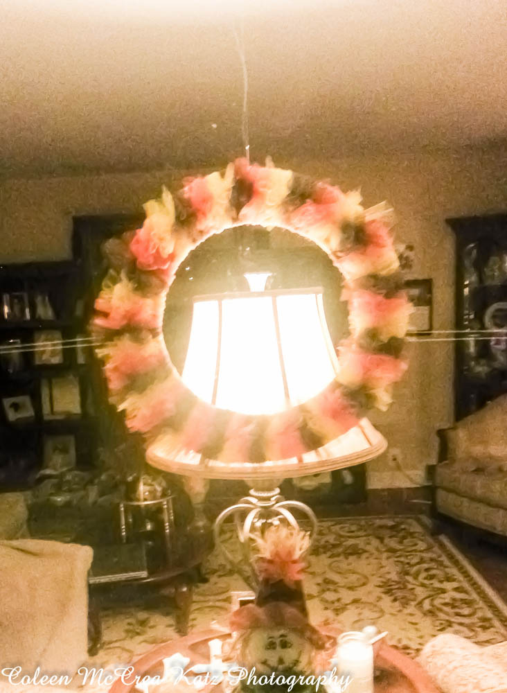 The mesh headband and the tube top of the tutu where also purchased at Joann's Fabric. I think make a pompom from 6 inch wide white tulle using a needle and thread and attached it to the headband with a safety pin so I can put other things on there as I would like. For the tutu, I cut strips of the 6 inch wide tulle and looped it through some of the holes in the mesh and knotted it. This was not a difficult project, but it take some time to do.
